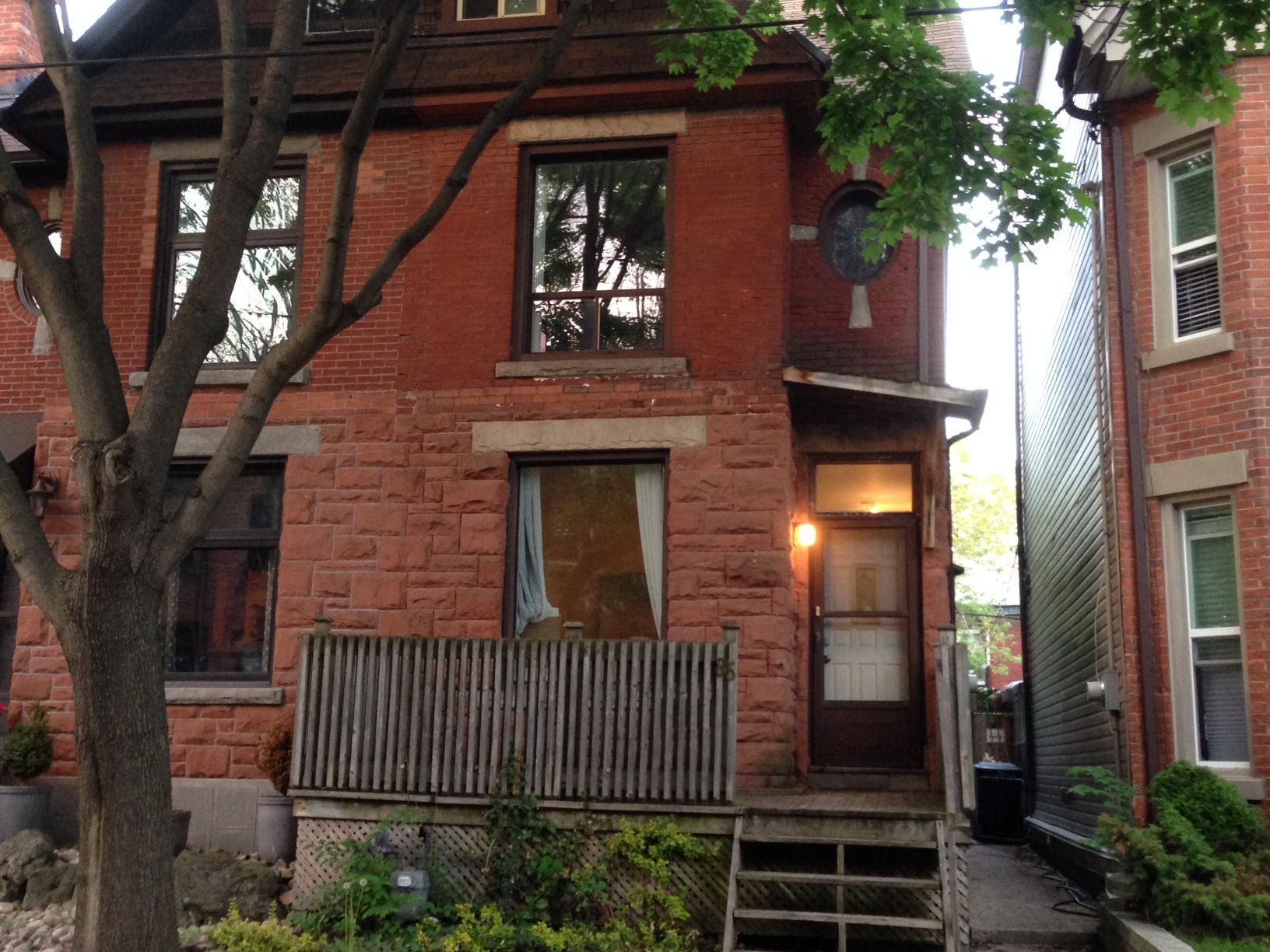 A classic red stone duplex in trendy Riverdale neighborhood. Located close to Queen Street and Dundas Streetcars on a very quiet street. The upper unit is a 1.5 bedroom, on two floor Loft, with private patio ,1000 Sqf . The main floor unit is one bedroom ,700 SqF. space with front facing patio.